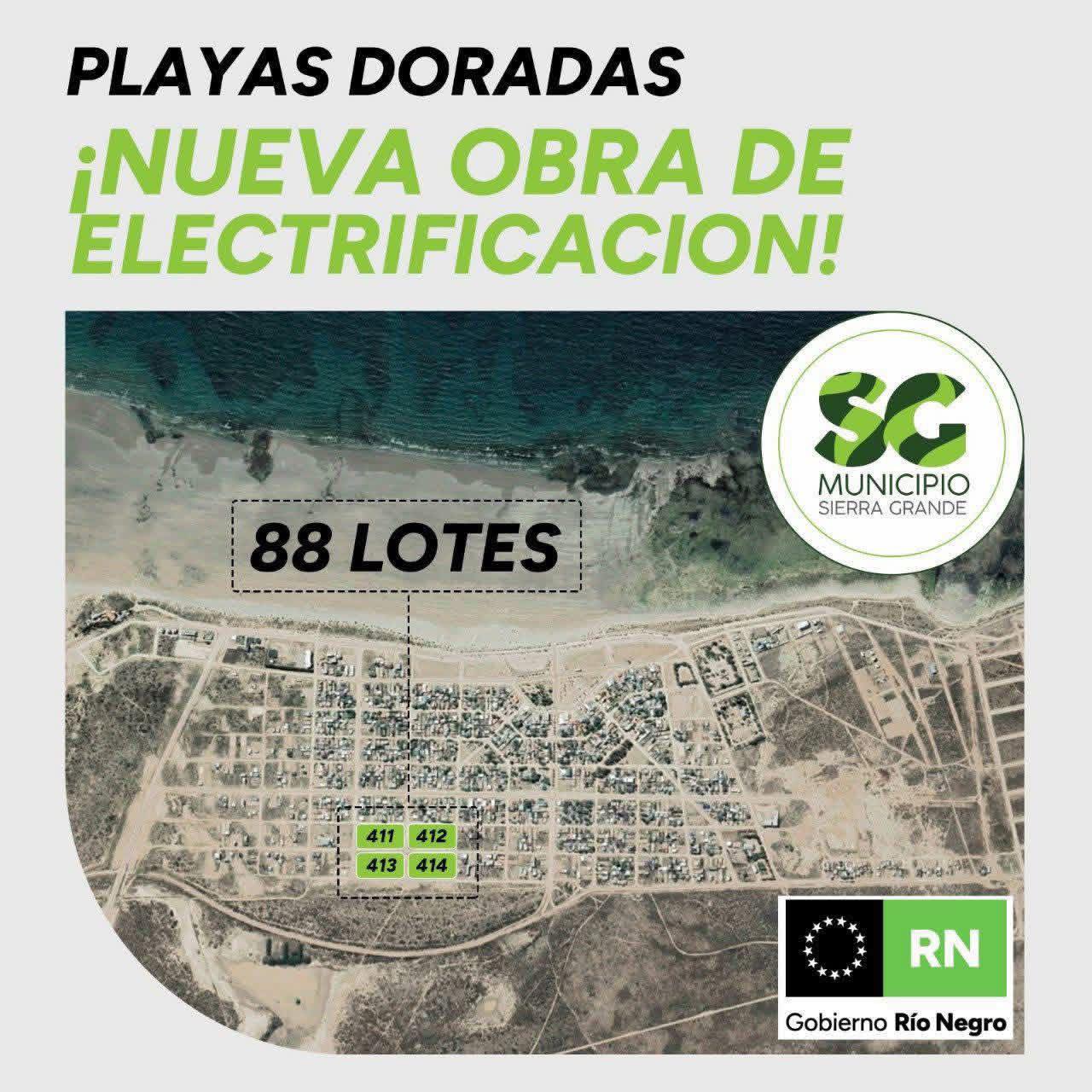 La Municipalidad de Sierra Grande informa a los vecinos de Playas Doradas que ha finalizado la obra de electrificación de las manzanas 411, 412, 413 y 414, concretando un avance histórico para un sector que esperó más de 15 años por el acceso al servicio de energía eléctrica.