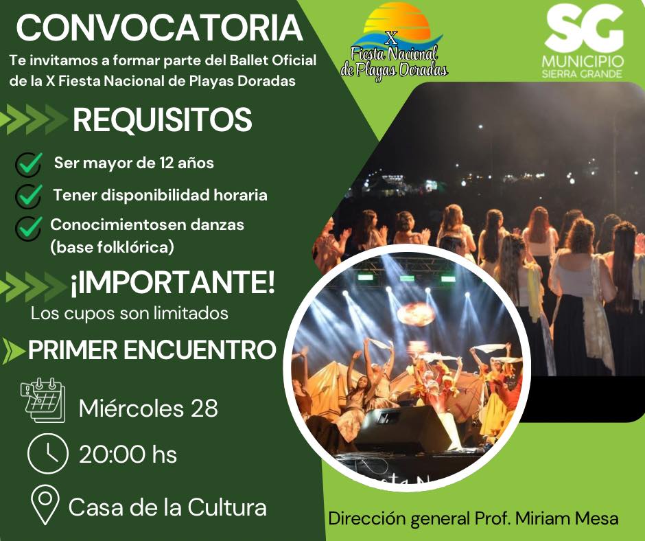 Convocatoria abierta, a sumarse al Ballet Oficial de la X Fiesta Nacional de Playas Doradas